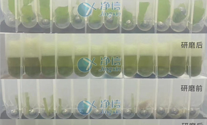 實(shí)驗(yàn)樣品:本次實(shí)驗(yàn)樣品為水稻葉片,此次選用凈信多樣品組織研磨進(jìn)行前處理操作,提取RNA實(shí)驗(yàn)。實(shí)驗(yàn)?zāi)康模褐参锖怂崽崛∈且粋€(gè)通過簡易化、可操作性的手段獲取“pure” DNA和RNA的過程。植物組織越幼嫩新鮮所含的次生代謝產(chǎn)物越少,隨著植物組織的逐漸成熟,次生代謝產(chǎn)物的含量會(huì)逐漸增多。