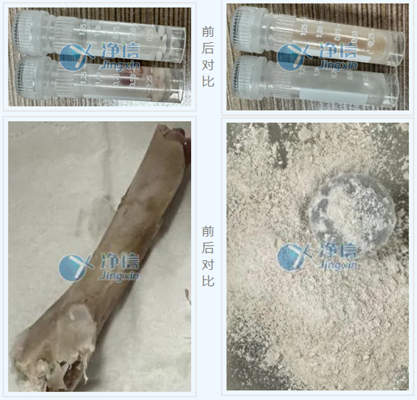 與實驗前對比,組織塊成均勻漿狀,骨頭呈細(xì)膩粉末狀。在生物提取實驗中,我們需要對樣品進(jìn)行研磨,研磨的方式一般可分為干磨和濕磨,但無論哪一種方法,呈現(xiàn)的效果需要足夠均勻和細(xì)膩才能保證后續(xù)提取實驗的成功率。本實驗中的樣品均已達(dá)到實驗要求,可用于后續(xù)提取實驗。