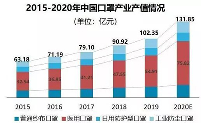 事實上,中國是一個口罩產業大國,生產了全球約50%的口罩。在疫情發生之前,中國口罩日產能達到2000多萬只。2019年,中國大陸地區口罩產量超過50億只,產值高達102.35億元。一年50億只,分到每個人身上也就不到4只,而且在有些高風險的情況下,口罩每4小時就需要更換一次。面對新冠疫情橫行,14億人的需求,這就顯得杯水車薪了。