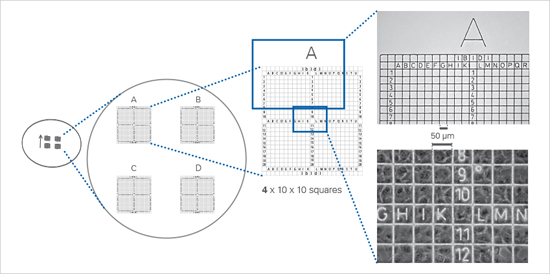 Also available in a Grid-500 version with ibidi Polymer Coverslip Dish 35 mm, high Grid-500 or μ-Slide 8 Well Grid-500