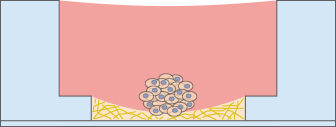 After the gel has been pipetted into the inner well and given time to solidify, the cells can be seeded on top of it for tube formation analysis. Due to the “well-in-a-well” technology, the amount of gel needed is reduced to only 10 μl per well, which is 10% of the amount used in regular multiwell plates.