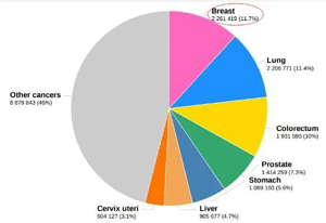 2020年全球常見(jiàn)新發(fā)癌癥類(lèi)型及占比