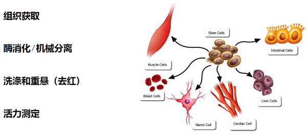 從組織獲得存活單細(xì)胞是一個(gè)復(fù)雜過(guò)程,目前市面上組織單細(xì)胞化的方法有采用機(jī)器處理或者人工處理方法,以上處理方法均存在處理時(shí)間長(zhǎng)、細(xì)胞處于逆境狀態(tài)時(shí)間長(zhǎng)、細(xì)胞得率低、細(xì)胞存活率低、操作繁瑣等問(wèn)題。單細(xì)胞懸液儀結(jié)合特定組織松解劑,快速、輕柔、安全、簡(jiǎn)捷、高效、自動(dòng)化的從組織如(脂肪、骨骼肌、動(dòng)脈血管內(nèi)皮、心臟、肝臟、脾臟、肺泡、腎臟、腦、腫瘤)30min內(nèi)全自動(dòng)完成組織單細(xì)胞的解離。