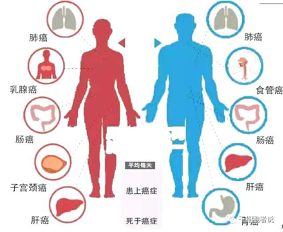 在我國,癌細胞頻繁“光顧”的人體組織,位居男性發病率前十位的分別是,肺、胃、肝、食管、大腸癌、膀胱、胰腺、腦、淋巴、腎;女性為肺、乳腺、大腸、胃、肝、食管、卵巢、宮頸、胰腺、腦。“可以說,這十種腫瘤占據了所有腫瘤類型的80%以上。