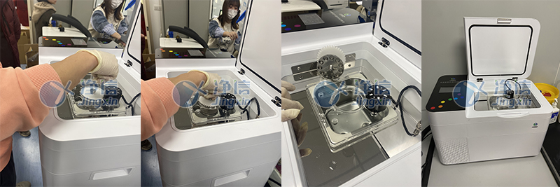 4.儀器配有旋轉(zhuǎn)馬達(dá),超聲時(shí)自動連續(xù)旋轉(zhuǎn)離心管適配器,使超聲能量分布更均勻;